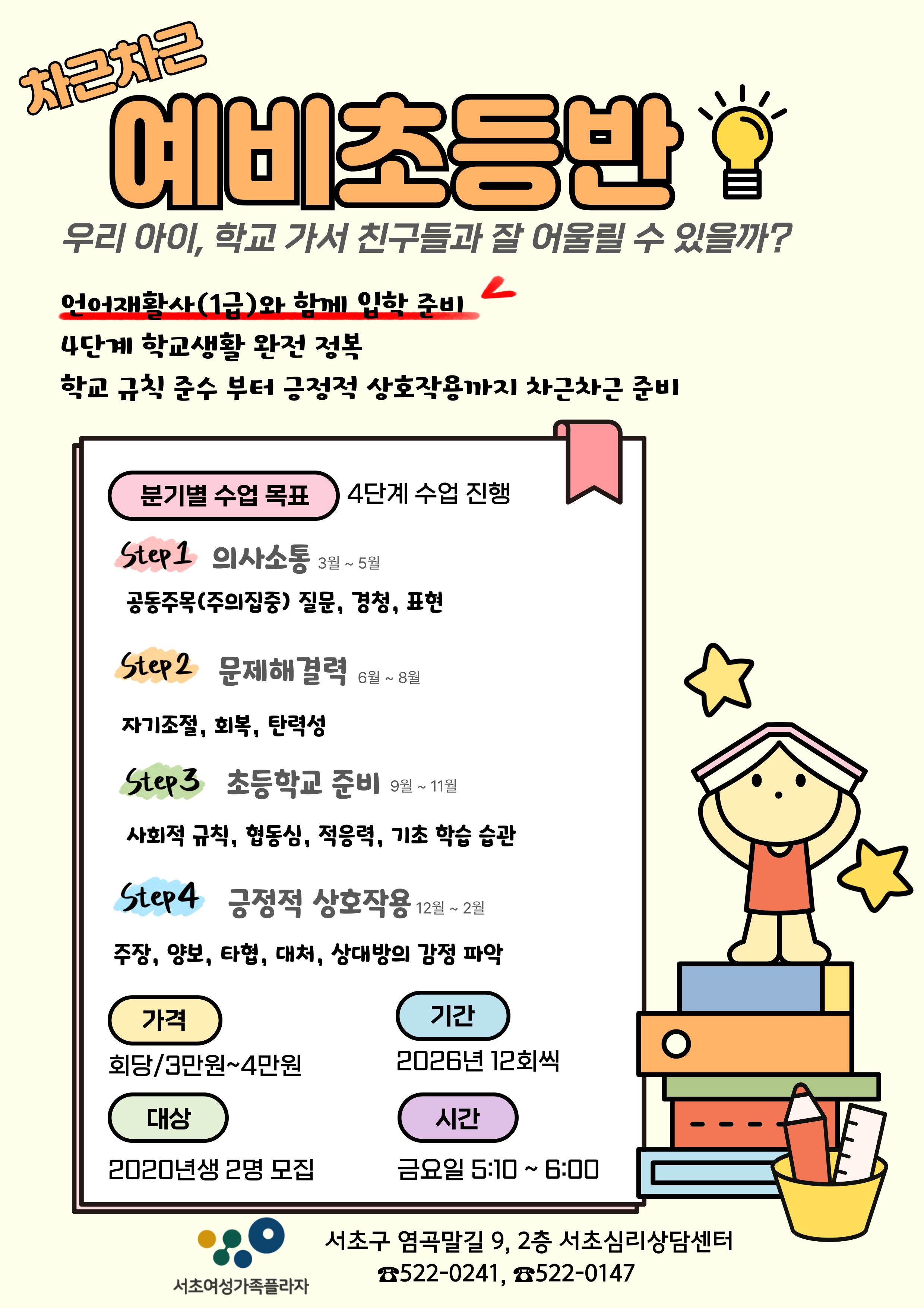 서초심리상담센터[내곡] - 차근차근 예비초등반(7세) 언어 집단 모집