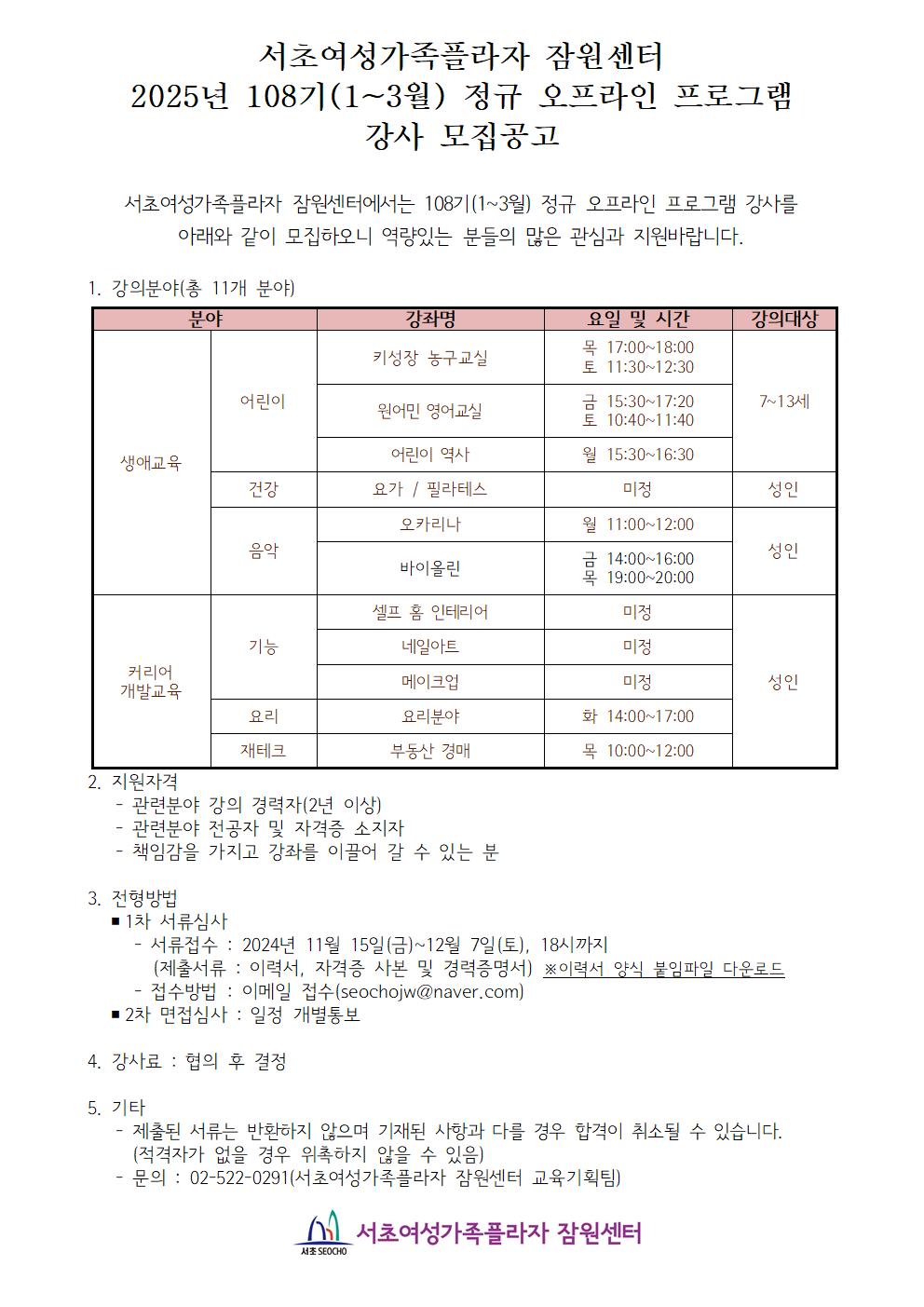 붙임2. 강사지원서 및 개인정보제공동의서(양식).hwp (87KB) 붙임1. 강사 모집공고(108기_).hwp (116KB)