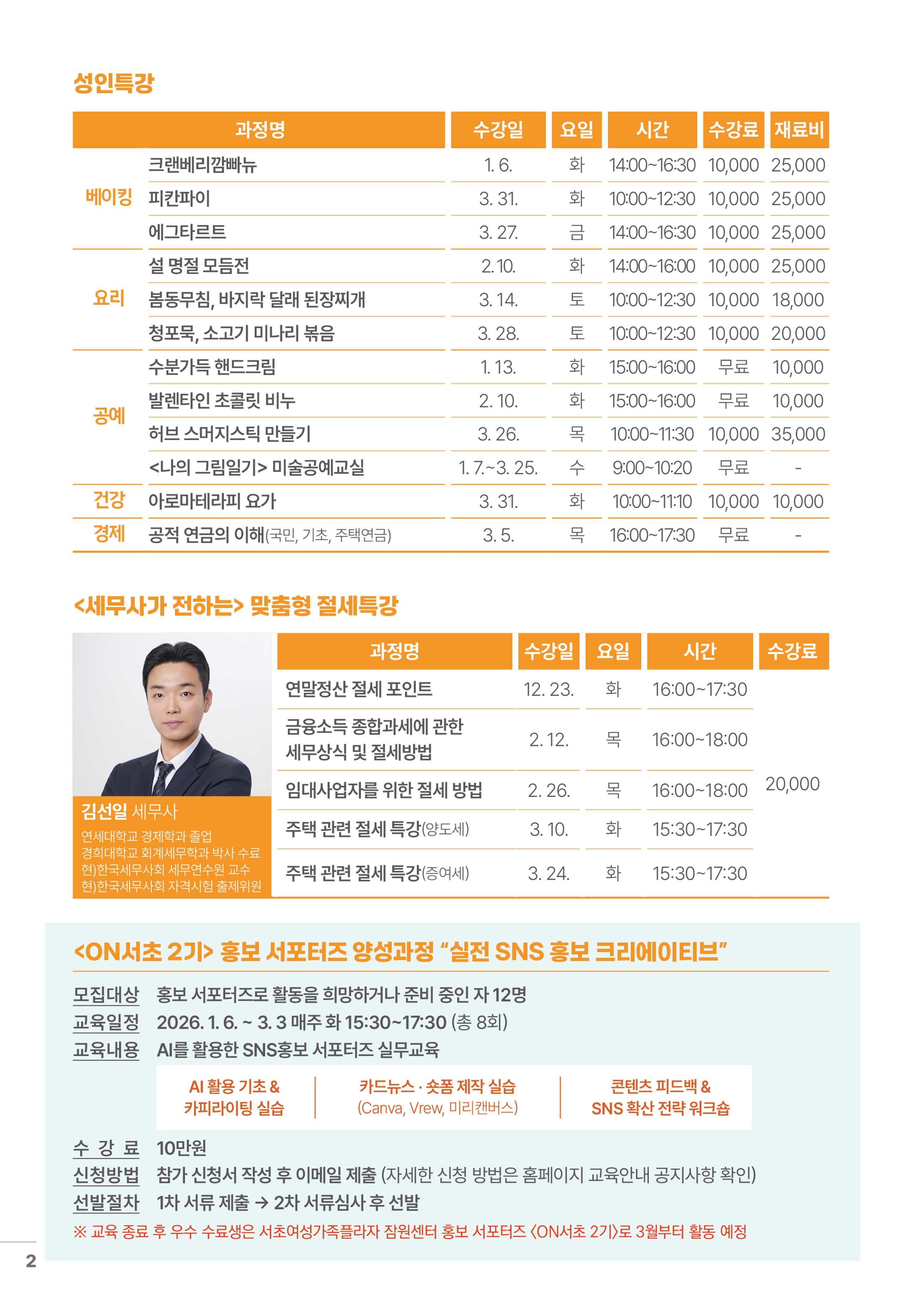 ■ 2026년도 일부 강좌 수강료 조정 안내 최근 운영비, 강사비 등 필수 비용의 지속적인 상승으로 인해 2026년 1월부터 부득이하게 일부 강좌에 한하여 수강료를 조정하게 되었음을 안내드립니다. [수강료 조정 강좌] 총 21강좌