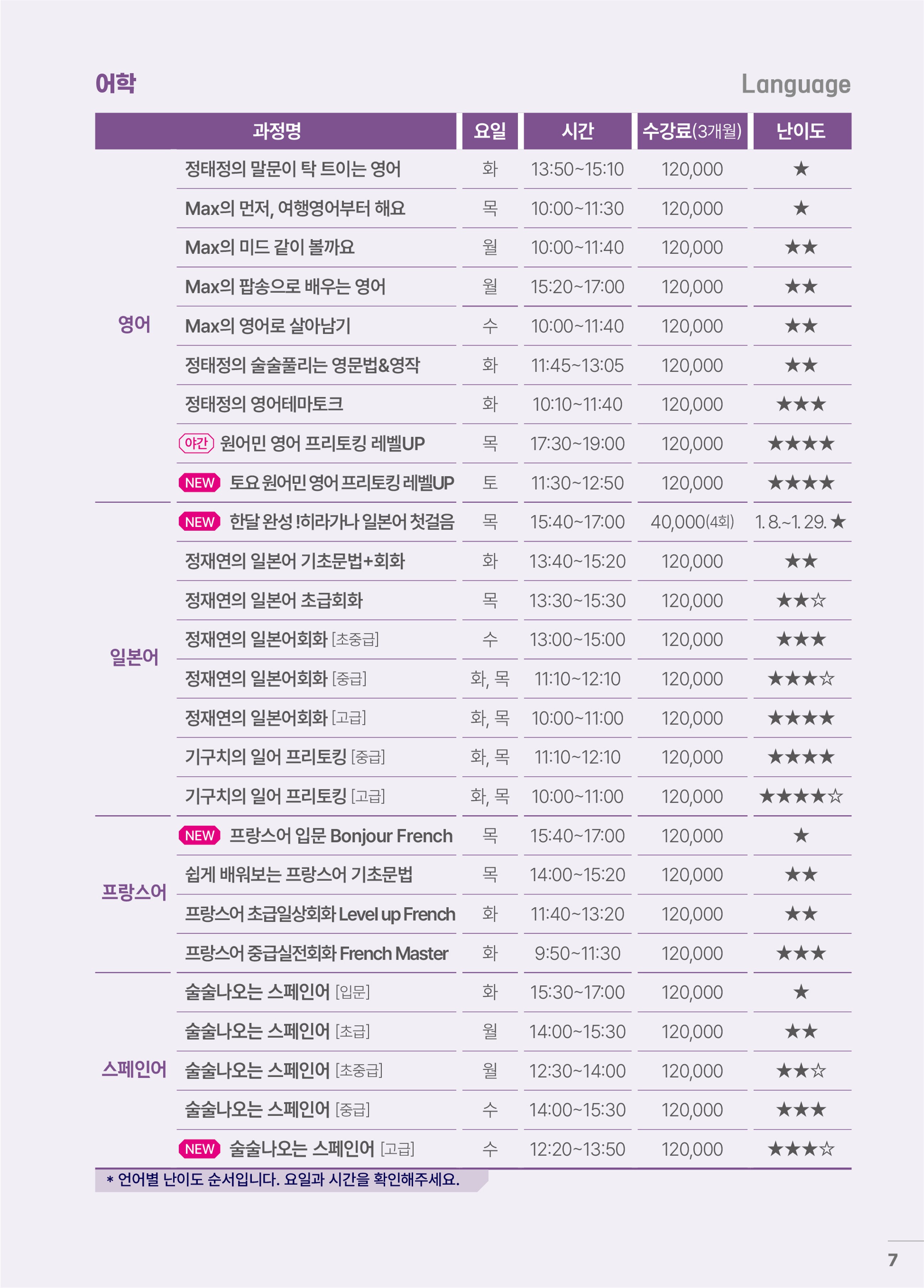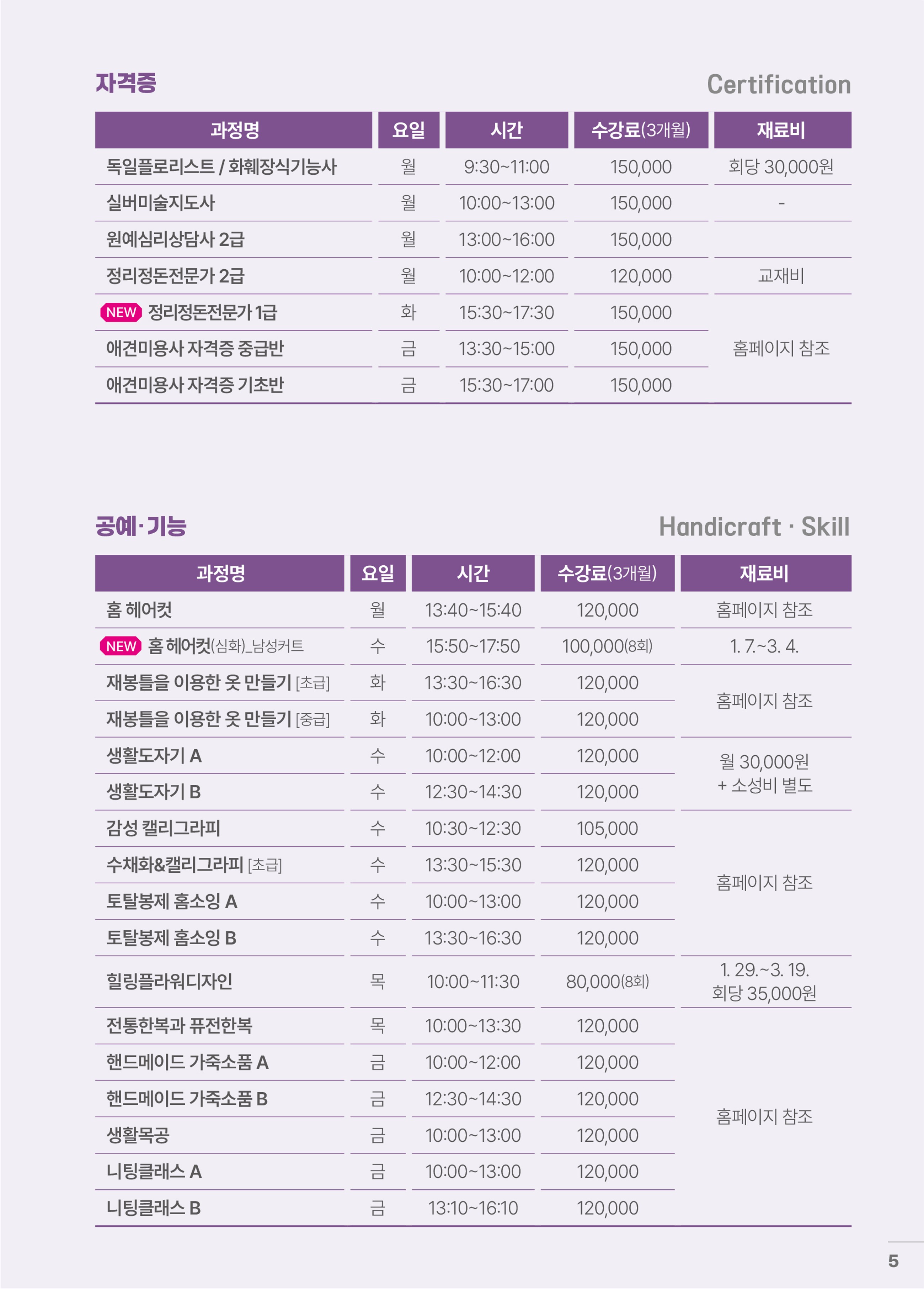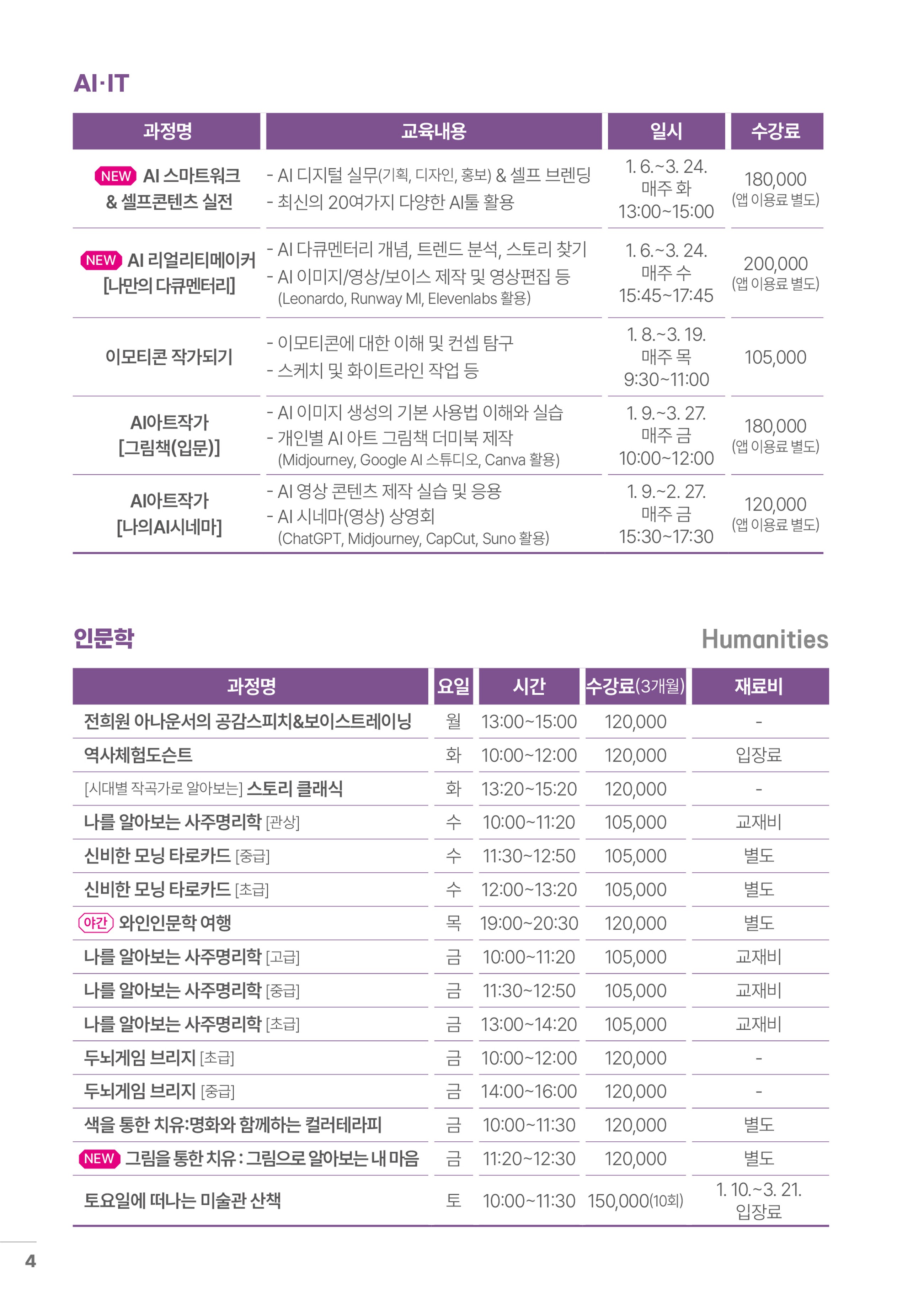 ※ 이외 강좌는 기존 수강료를 유지하여 운영합니다. 본 센터는 수준 높은 강의 질 확보 및 안정적인 교육 서비스를 제공하기 위해 최선을 다하겠습니다.