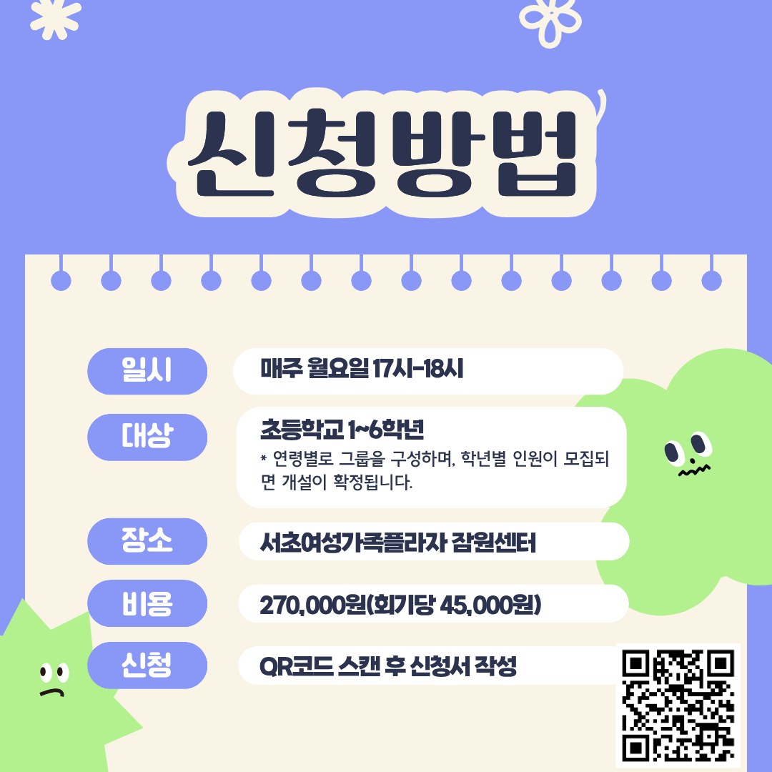 ▶ 문 의 : 02-522-0294 (서초여성가족플라자 잠원센터 담당자)