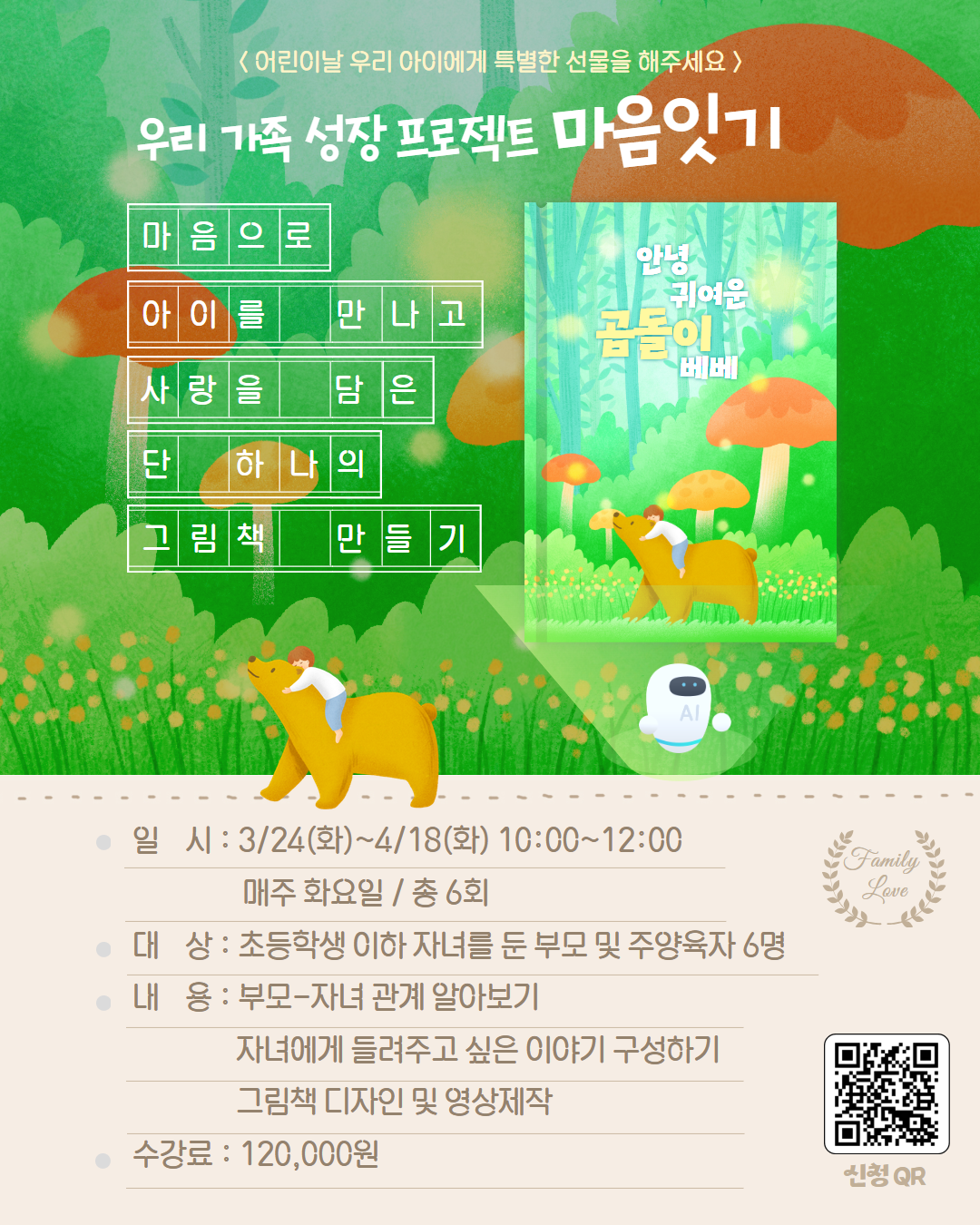 전문 상담사와 함께 자녀와의 소중한 기억을 되짚고, AI 기술로 우리 아이만의 그림책을 직접 만들어보세요.